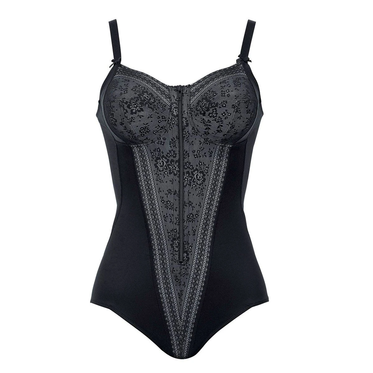 ANITA Body Sans Armatures Avec Fermeture éclair Avant Fiore Noir