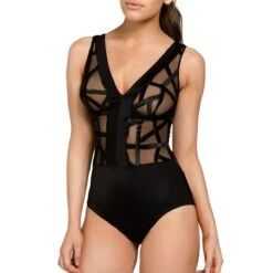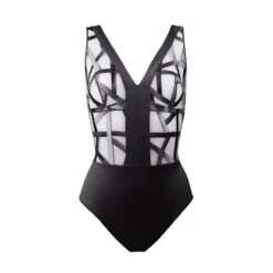 Body Serie Noire En Tulle Noir Transparent Brodé Et Microfibre