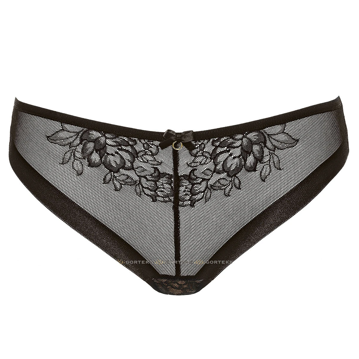 La culotte Porto noir créée par Gorteks est une lingerie fĂ©minine et glamour. On adore le tulle ornĂ© de broderies ainsi que les finitions satinĂ©es, confortables et ultra glamour. Coup de coeur pour le petit noeud rĂ©haussĂ© d’un anneau sur l’avant. Pour une allure de rĂŞve, complĂ©tez ce sublime dessous avec l’un des soutiens-gorge de la mĂŞme collection.