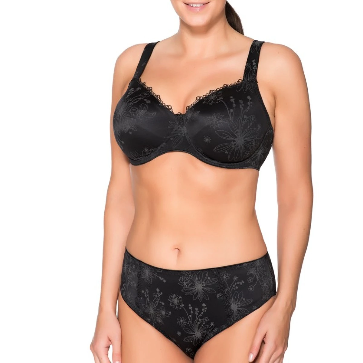 Le slip midi Viola noir est confectionnĂ© dans une matière en microfibre satinĂ©e agrĂ©mentĂ©e de discrets imprimĂ©s floraux. Soyeuse, cette culotte prĂ©vue pour les morphologies les plus rondes jusqu’en taille 58/60 est dĂ©licatement ourlĂ©e de guipĂ»res sur les cĂ´tĂ©s. Cet Ă©lĂ©gant modèle de lingerie combine Ă la fois raffinement et confort.