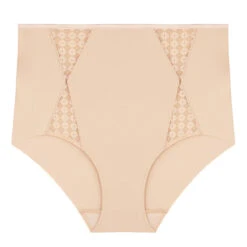 La culotte taille haute Absolu beige de Lou nous charme par ses empiècements graphique en micro résille qui apportent un style moderne et flattent la silhouette ! On apprécie les finitions « clean cut » au dos qui assurent un grand confort associées au coloris nude pour une discrétion sous les vêtements ! La couture verticale donne un beau galbe aux fesses.