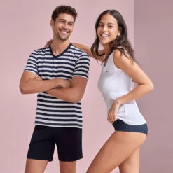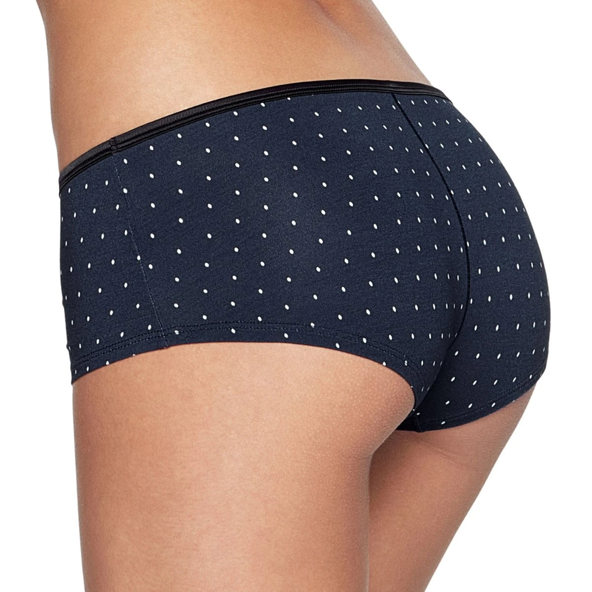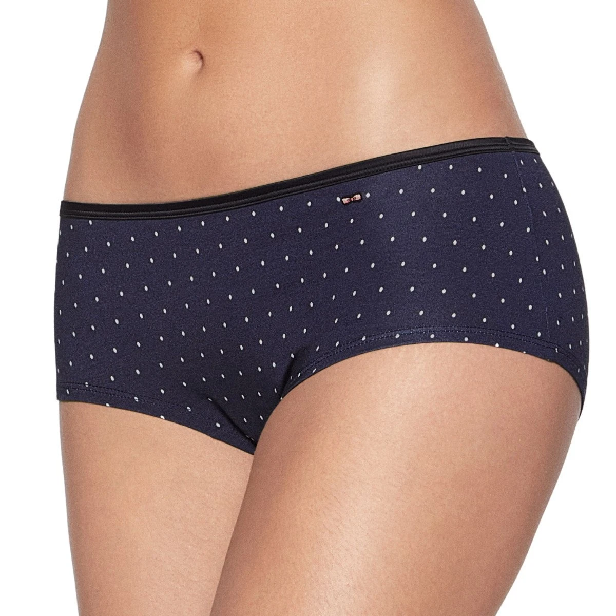 La marque européenne Eden Park est renommée pour sa lingerie et ses tenues d’intérieur de qualité. La douceur des matières est la force d’Eden Park, idéale pour les femmes ou jeunes filles sensibles aux matières. Le modal est certifié Oeko Tex, garantissant ainsi un shorty exempt de toutes substances nocives. Son coloris bleu marine est intemporel, quant aux pois blancs, ils apportent une touche tendance à ce shorty. Il sera facile de le marier avec vos soutiens-gorge ou vous pourrez aussi trouver dans la même gamme le soutien-gorge triangle sans armatures bleu foncé à pois.