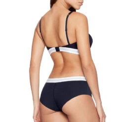 La marque Eden Park est reputĂ©e pour l’utilisation de matières de qualitĂ©. Ici ce soutien-gorge triangle est fait en coton bio certifiĂ© Oeko Tex, cela signfie qu »il n’y a aucune trace de substances nocives dans les tissus. D’une douceur et d’un confort absolus, ce soutien-gorge triangle est fait pour les femmes Ă la peau sensible. On aime les dĂ©tails soignĂ©s Eden Park, notamment la bande Ă©lastique large sous poitrine qui nous fait penser aux boxers pour hommes. Ce triangle possède des bretelles rĂ©glables et permet un ajustement parfait. Si vous souhaitez assortir votre soutien-gorge bleu foncĂ© Eden Park, nous vous recommandons le shorty bleu foncĂ© de la mĂŞme ligne avec le rappel de l’Ă©lastique Ă la taille.Â