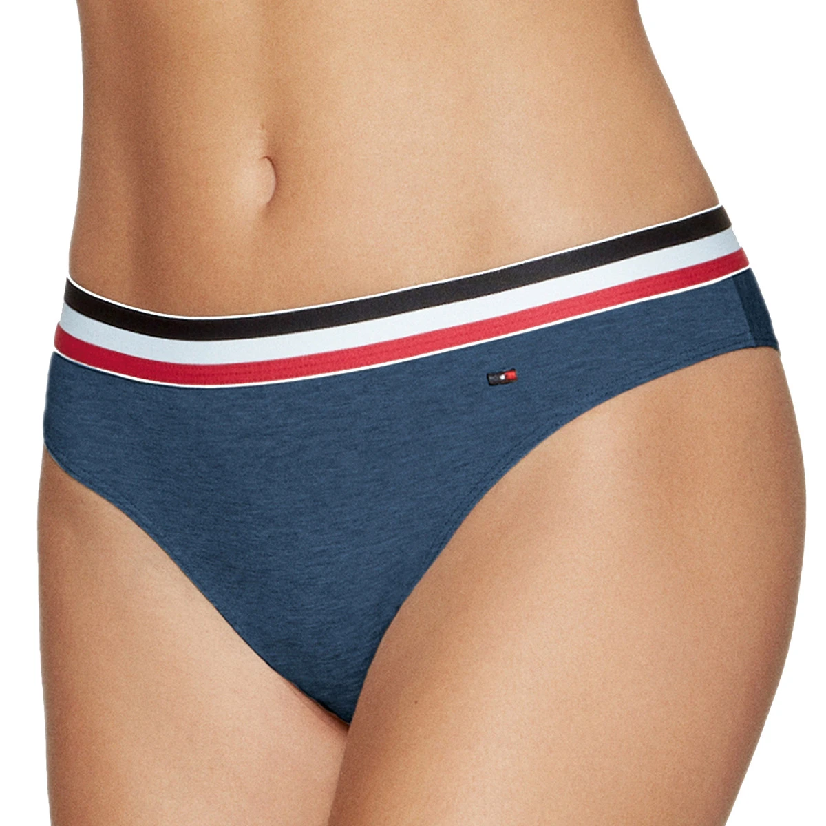 Enfilez ce superbe tanga au tissu bleu chiné signé Eden Park ! Look sportif mais ultra féminin, laissez-vous séduire par la douceur de son coton et sa large ceinture plate élastique qui offre un confort et un maintien idéal. On aime le célèbre noeud papillon brodé sur le côté du tanga et la ceinture tricolore, Vive la France !