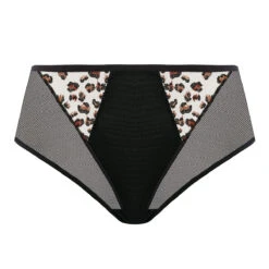 La culotte haute Namrah noir d’Elomi est une lingerie très fĂ©minine ! Coup de coeur pour les empiècements de tulle transparents ornĂ©s d’une broderie imprimĂ©e lĂ©opard noir avec des tons cuivrĂ©s et des touches mĂ©talliques bronze pour une finition brillante et glamour. ProposĂ© jusqu’Ă la taille 50/52 ce ravissant dessous est un bonheur Ă porter.
