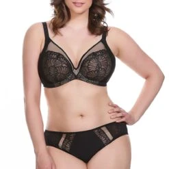 La culotte haute Namrah noir d’Elomi est une lingerie très fĂ©minine ! Coup de coeur pour les empiècements de tulle transparents ornĂ©s d’une broderie imprimĂ©e lĂ©opard noir avec des tons cuivrĂ©s et des touches mĂ©talliques bronze pour une finition brillante et glamour. ProposĂ© jusqu’Ă la taille 50/52 ce ravissant dessous est un bonheur Ă porter.