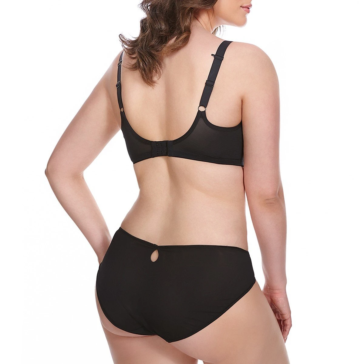 La culotte maxi Kiki noir d’Elomi est une lingerie grande taille qui rĂ©veillera votre sensualitĂ©. On adore la maille semi-transparente sur les cĂ´tĂ©s et au dos pour une silhouette fĂ©minine ultra glamour. Coup de coeur pour les broderies sur l’avant qui affinent la silhouette et la couture verticale au dos qui galbe les fesses. Le pan avant doublĂ© de coton est totalement opaque.