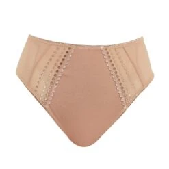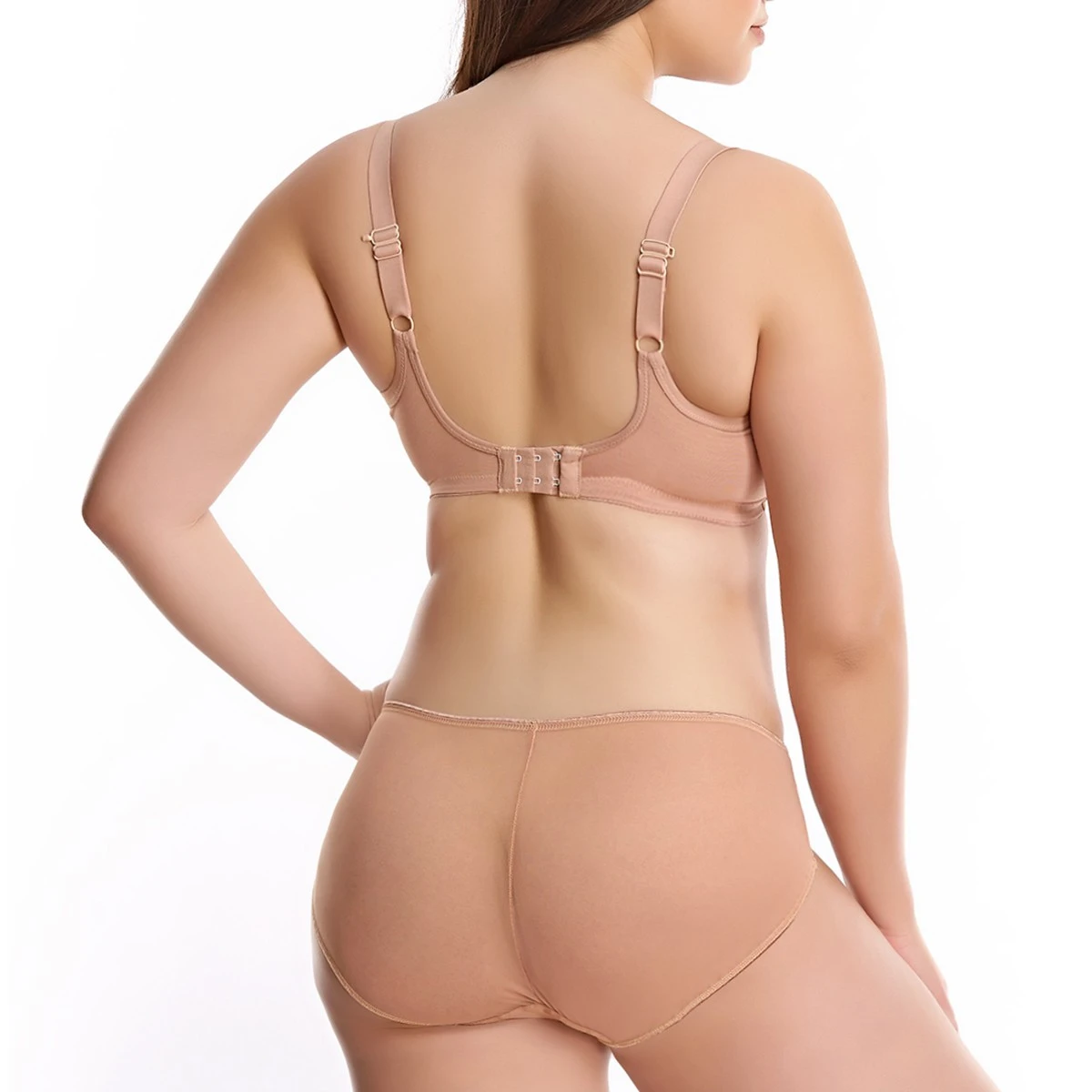 La culotte maxi Matilda cafĂ© au lait d’Elomi est une lingerie grande taille basique d’une beautĂ© absolue. On adore la maille transparente sur les cĂ´tĂ©s et au dos pour une silhouette fĂ©minine ultra glamour. Coup de coeur pour les lignes de broderies perlĂ©es sur l’avant qui affinent la silhouette et la couture verticale au dos qui galbe les fesses.