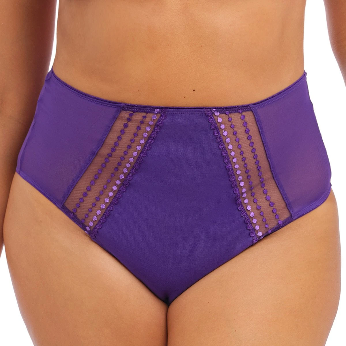 La culotte taille haute Matilda iris d’Elomi est une lingerie glamour bien enveloppante. On adore la maille transparente sur les cĂ´tĂ©s et au dos pour une silhouette fĂ©minine ultra glamour. Coup de coeur pour les lignes de broderies perlĂ©es sur l’avant qui affinent la silhouette et la couture verticale au dos qui galbe les fesses.