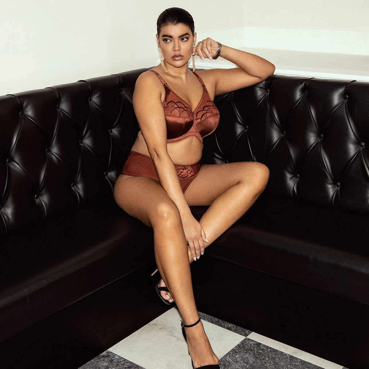 Le soutien-gorge à armatures Cate est une valeur sûre de chez Elomi Lingerie ! On apprécie ses bonnets bien emboîtants et ses bandes de renfort sur les côtés extérieurs du bonnet qui recentrent les poitrines lourdes. On adore son coloris dark copper, un rouille foncé très élégant et on aime la broderie sur le haut des bonnets qui apporte un design élégant et moderne à cette lingerie grande taille.