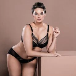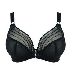 Le soutien-gorge balconnet « plunge » Matilda noir de Elomi est dotĂ© d’un bonnet emboitant renforcĂ© par des bandes de maintien latĂ©rales qui galbent idĂ©alement la poitrine. Cette lingerie grande taille ultra sensuelle avec sa maille lĂ©gèrement transparente rĂ©veillera votre fĂ©minitĂ©. Coup de coeur pour les lignes de broderie perlĂ©e qui subliment le dĂ©colletĂ© et l’entre-seins.