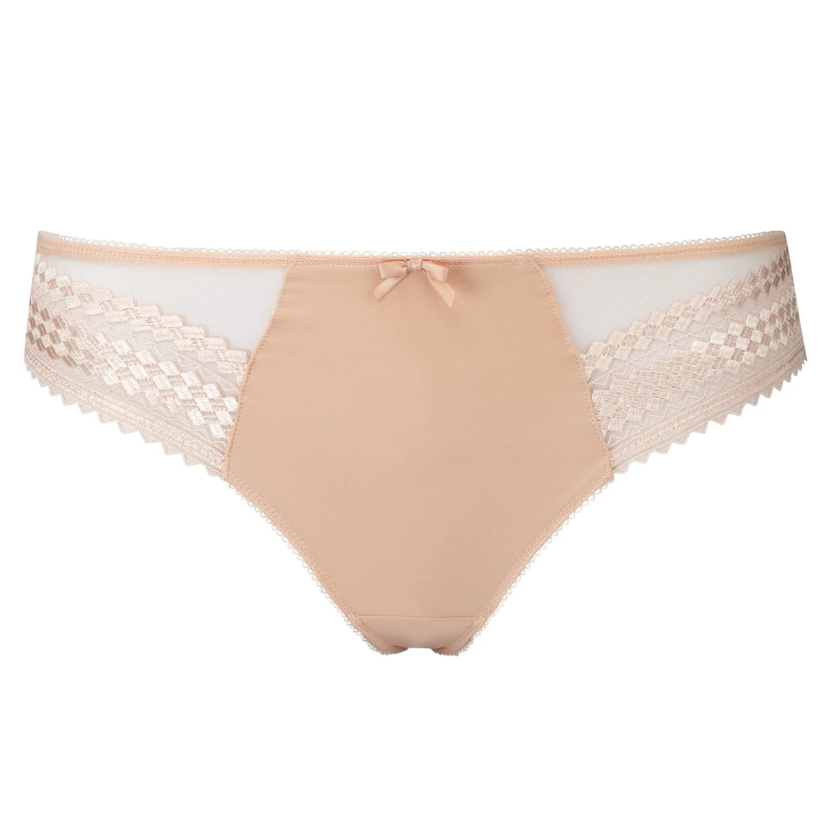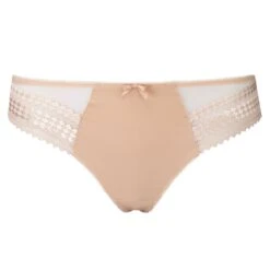 Vous apprĂ©cierez la matière douce en microfibre de cette culotte, pour la partie avant, se dĂ©clinant dans un joli tulle transparent sur les cĂ´tĂ©s. On apprĂ©cie Ă©galement le petit noeud Ă l’avant. Cette teinte dorĂ©e peut aller Ă peu près avec tout, ce qui vous permettra de porter cette culotte Ă tout moment. Il ne vous manque plus que le soutien-gorge assorti de la gamme Rebecca Nude pour ĂŞtre parfaite.