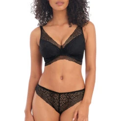 La culotte brésilienne Erin noir de Freya nous séduit par sa jolie dentelle florale ajourée au style crochet ! On apprécie sa coupe sensuelle ainsi que son empiècement en V au dos qui sublimera vos fesses. Le coloris noir chic et indémodable est une valeur sûre !