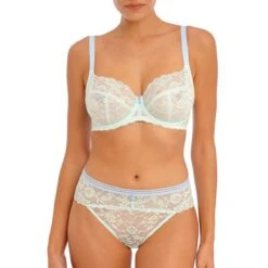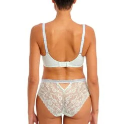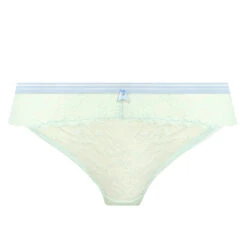 La culotte en dentelle Offbeat Pure Water de la marque Freya est Ă la fois Ă©lĂ©gante et confortable. FabriquĂ©e Ă partir d’une jolie dentelle vert d’eau, elle offre une apparence fĂ©minine et raffinĂ©e. La ceinture Ă©lastique de la culotte est ornĂ©e de rayures semi ajourĂ©es dans un doux ton bleu pastel contrastant, ce qui lui confère un style unique et moderne. Cette ceinture Ă©lastique offre un ajustement parfait et assure un confort optimal tout au long de la journĂ©e. Une petite ouverture au dos de la culotte ajoute une touche de charme supplĂ©mentaire. Cet Ă©lĂ©ment subtil mais sĂ©duisant donne un aperçu de la peau, crĂ©ant un Ă©quilibre entre l’Ă©lĂ©gance et la sensualitĂ©.