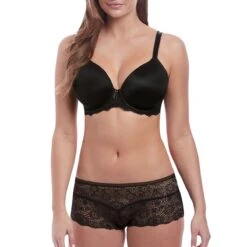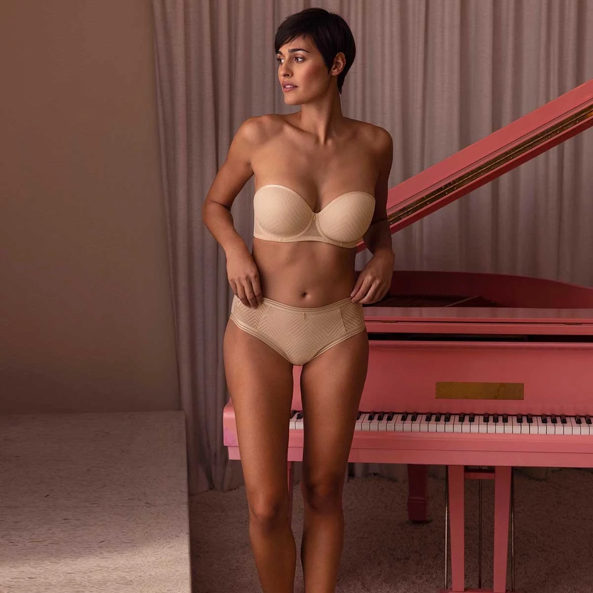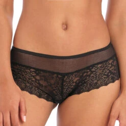 Le shorty chic en dentelle géométrique de Freya, la marque anglaise connue pour sa lingerie haut de gamme, est taillé dans un beige naturel invisible sous les vêtements. Avec sa maille semi-transparente, cette lingerie est parfaite pour celles qui aiment afficher leurs courbes tout en gardant un sens de l’élégance.