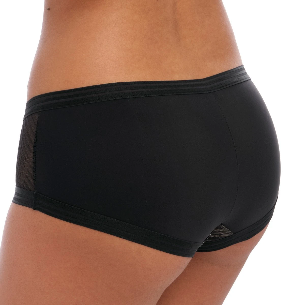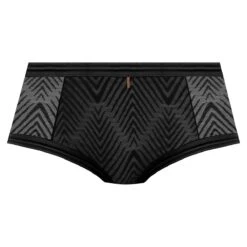 Le shorty taille basse Tailored noir de Freya nous séduit par son look chic et moderne. On apprécie la doublure sur l’avant ainsi que sa coupe confortable qui convient à toutes les morphologies. On aime sa dentelle géométrique et le petit détail en or rose sur l’avant. Le coloris noir, grand classique indémodable, est indispensable dans votre tiroir de lingerie !