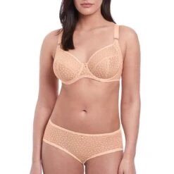 Le shorty Starlight caramel de Freya nous charme par sa dentelle Ă pois ultra tendance sur l’avant. On apprĂ©cie la microfibre opaque au dos ainsi que les finitions « free-cut » sans coutures pour plus de discrĂ©tion sous les vĂŞtements. La coupe shorty ultra confortable convient Ă toute les morphologies. On aime le joli noeud et le dĂ©tail dorĂ© sur l’avant.Â