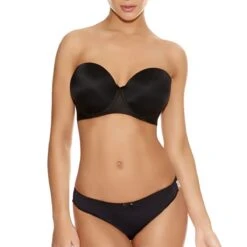 Le soutien-gorge Freya noir moulĂ© de la ligne Deco est un soutien-gorge bandeau Ă armatures idĂ©al pour l’Ă©tĂ© car il peut ĂŞtre portĂ© avec ou sans bretelles. Disponible jusqu’au bonnet J, grâce Ă ses bretelles multi-positions fournies avec, ce soutien-gorge avec bonnet emboitant peut aussi se porter avec les bretelles croisĂ©es dans le dos.