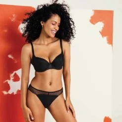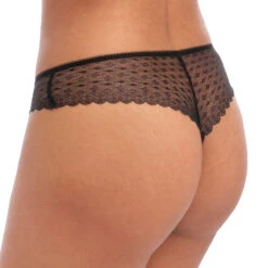 Le string brĂ©silien Signature noir de Freya possède une dentelle extensible qui prĂ©sente un design en diamant ultra glamour. On adore ce dessous fĂ©minin confortable, très agrĂ©able Ă porter … et Ă regarder. On apprĂ©cie la doublure sur l’avant ainsi que le coloris noir indĂ©modable.