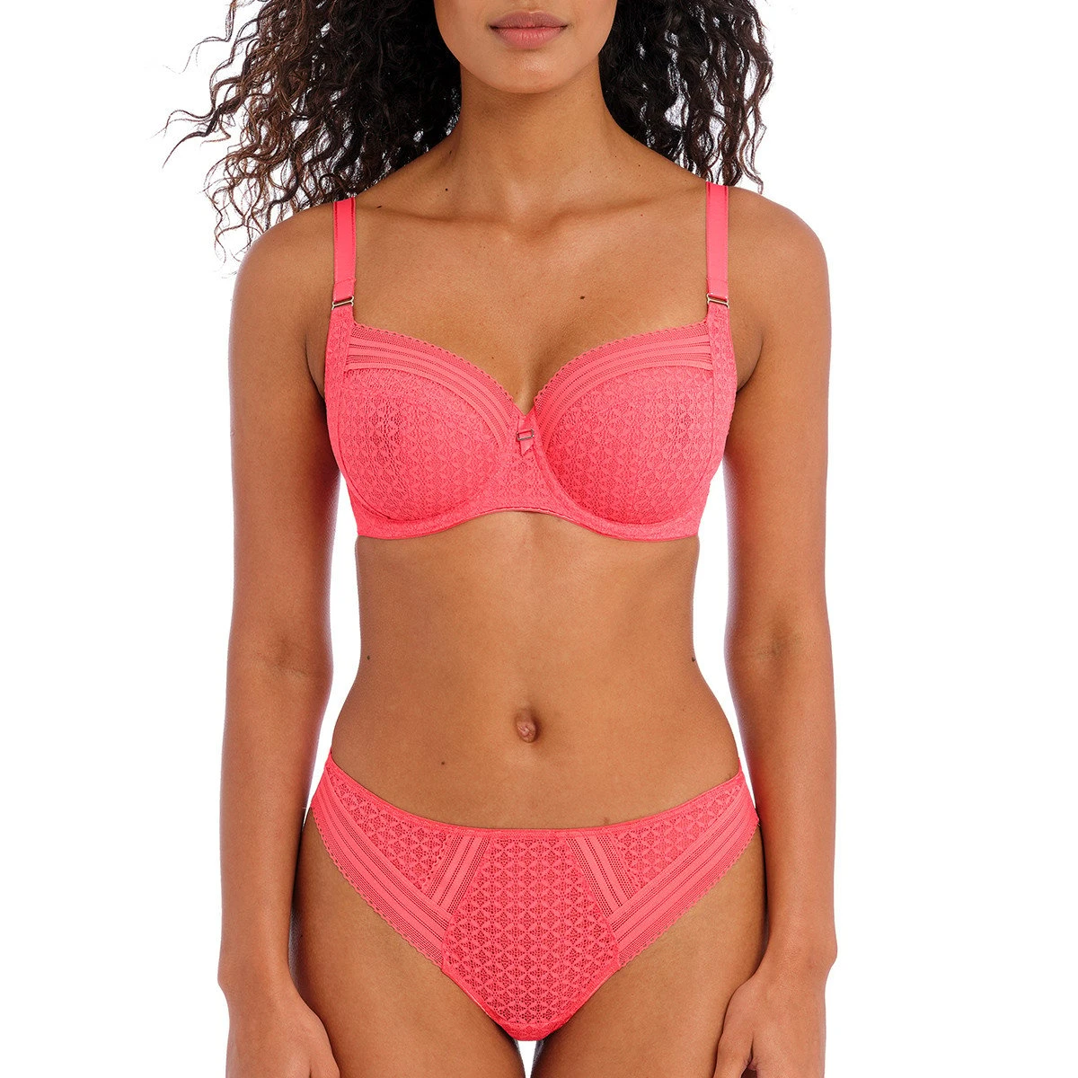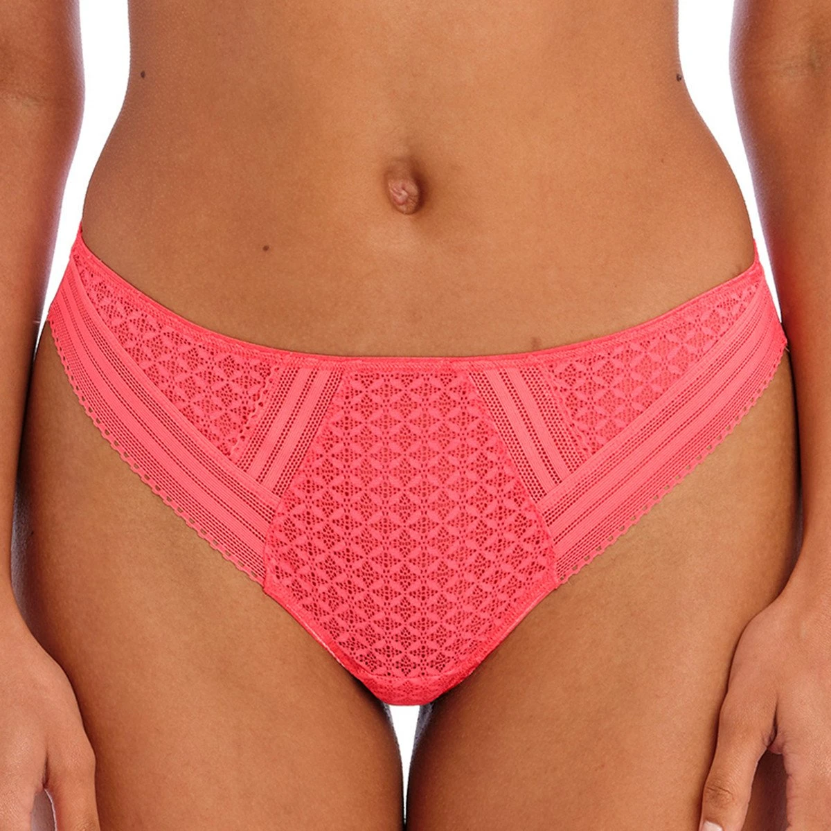 Ajoutez du peps dans votre tiroir de lingerie avec le string brésilien Viva sunkissed coral de Freya ! Ce joli dessous nous séduit par sa douce dentelle moderne et souple ! On adore les bandes ajourées qui redessinent la silhouette. Coup de coeur pour la coupe sensuelle et pour son nouveau coloris ultra tendance qui sublimera votre teint.