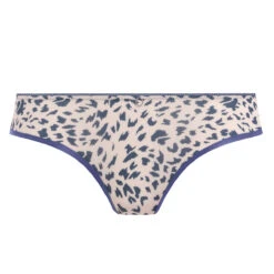Le string brésilien Wild side animal de Freya possède un imprimé léopard moderne gris bleuté sur fond vanille pour un look ultra tendance. On adore ce dessous féminin entre la culotte et le string, très agréable à porter … et à regarder. On apprécie la couture verticale plissée au dos qui épouse bien les formes.