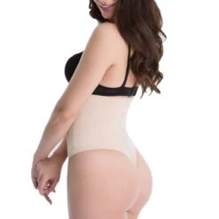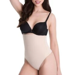 Le string gainant taille haute Justine Nude par Julimex est conçu pour affiner la silhouette. Cette gaine possède des bandes en silicone qui assurent une tenue parfaite. On aime l’effet retro de cette coupe, qui masque les imperfections. La coupe string permet une invisibilitĂ© totale sous les vĂŞtements mĂŞme moulants.