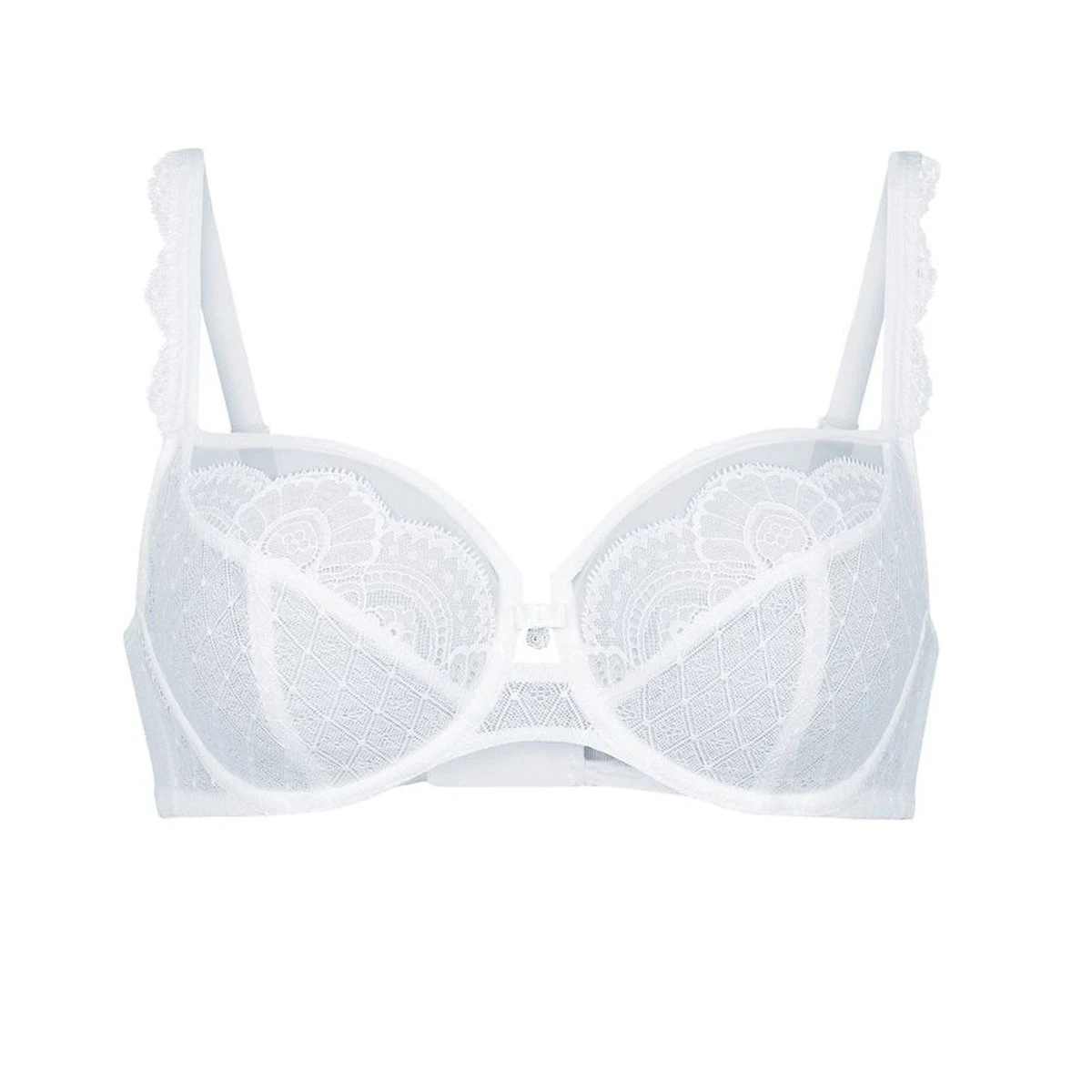 Le soutien-gorge Ă armature Selma blanc de Rosa Faia est une vĂ©ritable merveille ! On aime la dentelle qui orne les bonnets et les bretelles et on apprĂ©cie ses bonnets en 3 parties avec renforts latĂ©raux. Coup de coeur pour l’ouverture Ă l’entre-bonnets agrĂ©mentĂ©e d’un petit noeud et d’un joli bijou qui apporte une touche d’Ă©clat Ă cette somptueuse lingerie.