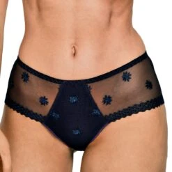 Le shorty Matrix nĂ©on botanica de Louisa Bracq nous envoĂ»te par ses broderies qui font rĂ©fĂ©rence aux cascades numĂ©riques du film Matrix. On adore l’effet pailletĂ© mĂ©tallisĂ© alliĂ©e au tulle transparent qui dĂ©voile sensuellement la peau. Coup de coeur pour la couture verticale qui donne un beau galbe aux fesses et pour la petite ouverture au creux des reins qui sublime ce modèle !