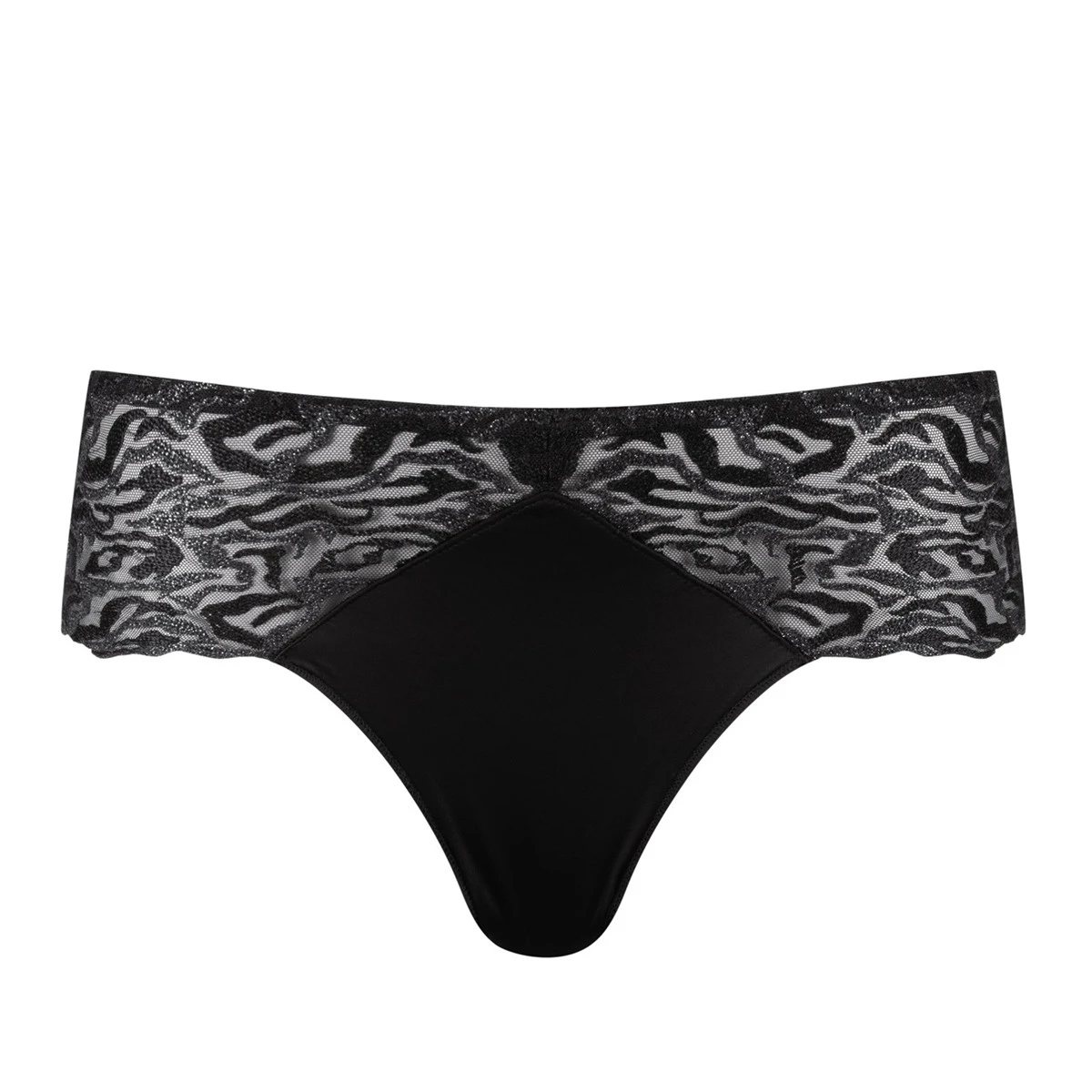 Ce shorty sĂ©duisant prĂ©sente un mĂ©lange parfait de tulle transparent et d’opacitĂ© subtile pour crĂ©er un jeu de contrastes captivant. La partie opaque sur l’avant met en valeur les dĂ©tails brodĂ©s et crĂ©e un contraste subtil avec la transparence sensuelle du tulle.Â