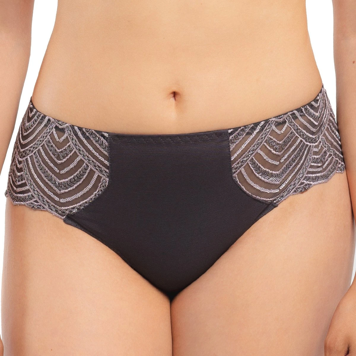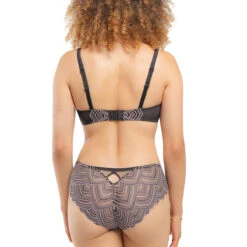 Le shorty Graal smoke confectionné par la marque Louisa Bracq possède une échancrure très sensuelle au niveau des fesses. On adore son tulle transparent orné de broderies graphiques. Coup de coeur pour la petite ouverture au creux des reins qui apporte un charme fou à cet irrésistible dessous féminin !