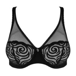 Le soutien-gorge foulard Tribal de Louisa Bracq possède une coupe seyante qui envellope les poitrines gĂ©nĂ©reuses. On aime cette splendide transparence du tulle dĂ©licat agrĂ©mentĂ© de broderies irrisĂ©es de style tribal. Effet choc pour cette lingerie atypique qui se propose jusqu’au bonnet F, du 85 au 110. Avec armatures pour un maintien irrĂ©prochable.Â