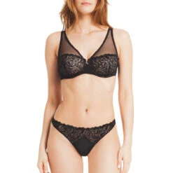 Le soutien-gorge sans armatures Perfect séduction noir de Gemma de Lou associe confort et glamour pour notre plus grand plaisir ! On est fan des plumetis losange parsemés ici et là ainsi que de la transparence qui sublime le décolleté. On apprécie le renfort sous poitrine ainsi que les baleines latérales qui assurent une tenue parfaite.