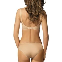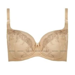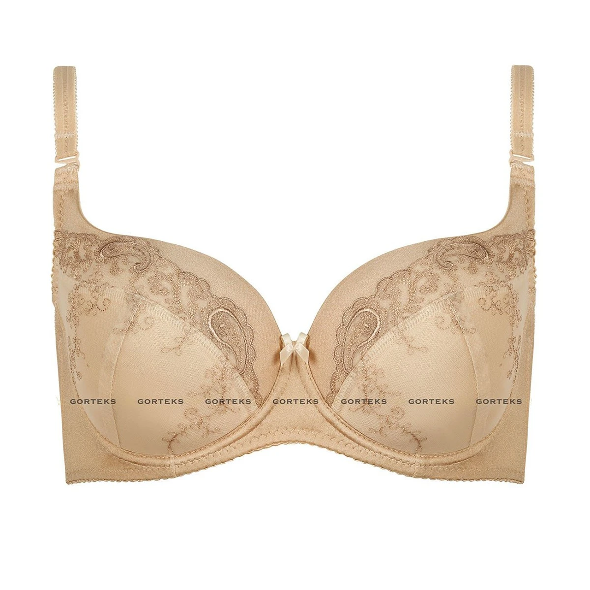 Le soutien-gorge emboitant Yvette beige dont le bonnet est doublé de mousse fine est un modèle élégant issus de la collection permanente de la marque Gorteks. Cette lingerie est une valeur sûre de-par sa confection balconnet avec un rembourrage souple qui assure une poitrine rebondie, parfaitement maintenue. On aime le système de bretelles amovibles et le bonnet travaillé de broderies.