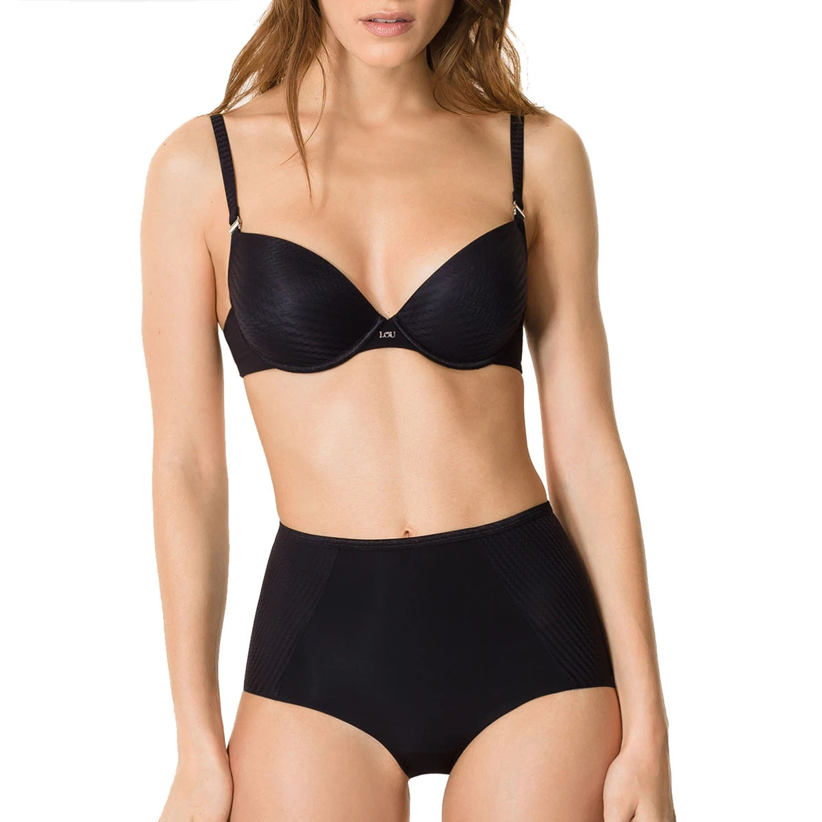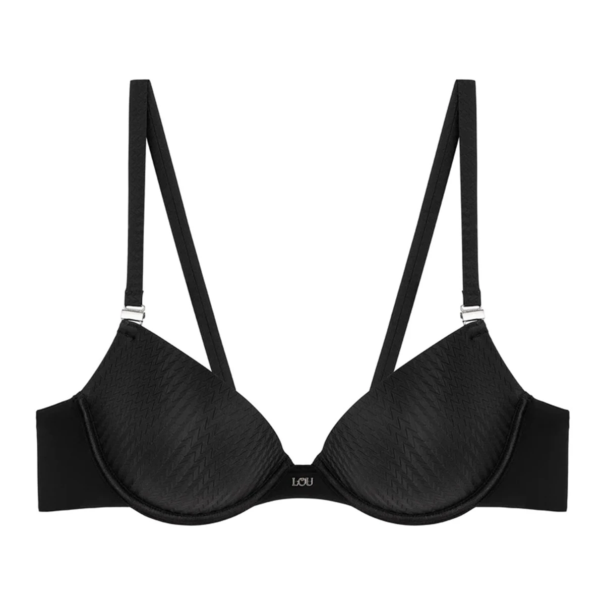Le soutien-gorge push-up à armatures Insoupçonnable noir de Lou est un must have dans votre garde-robe ! On apprécie les bonnets coqués qui donnent un beau galbe à la poitrine. Coup de coeur pour l’association de deux mailles lisse et chevrons au style prêt à porter. Les bretelles amovibles sont multi-positions et 1 bretelle tour de cou est livrée en complément pour varier différentes tenues.