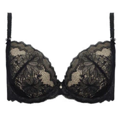 Le soutien-gorge Push-Up à armatures Stella noir de Lingerie Gorteks va sublimer votre poitrine ! Ce dessous chic possède des coussinets amovibles qui se glissent dans les bonnets pour afficher un décolleté pigeonnant. On aime les broderies florales noires valorisées par le fond nude. Les bretelles sont amovibles.