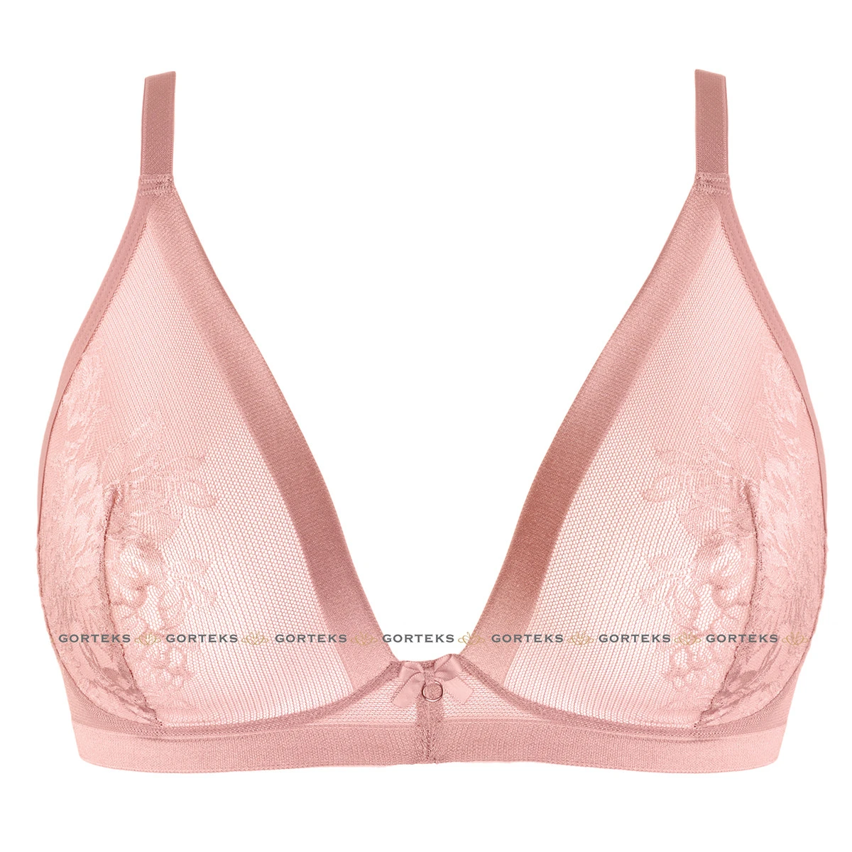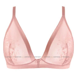 Le soutien-gorge sans armature Porto rose de la marque Gorteks nous séduit par son tulle vaporeux orné de motif floral. On adore la forme triangle avec bretelles réglables qui sera parfaite pour porter un décolleté plongeant. Coup de coeur pour le coloris rose poudré très romantique et pour les finitions satinées !