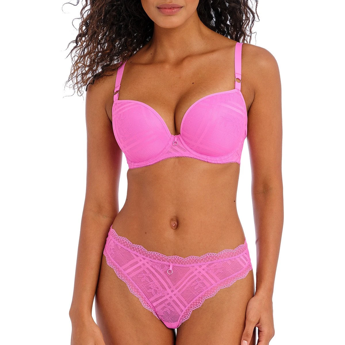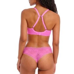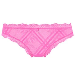 Le string brésilien Freya Fatale candy blossom de Freya lingerie nous séduit par s on coloris rose bonbon à croquer ! On adore sa dentelle graphique et florale ultra moderne et les bordures en dentelle qui redessinent la silhouette ! On apprécie sa couture verticale au dos qui donne un joli galbe aux fesses.