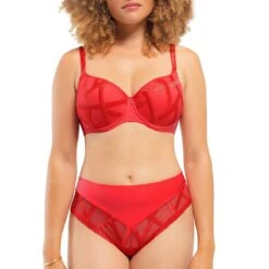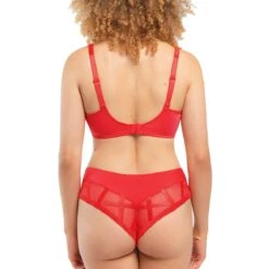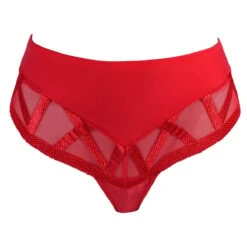 Envoûtant, le string Série rouge à lèvre de Louisa Bracq possède des broderies géométriques de type chevrons disposées sur le tulle transparent qui apportent un look moderne et sensuel. On aime la coupe effet shorty confortable et les jeux de transparences qui flattent la silhouette jusqu’au 48/50.