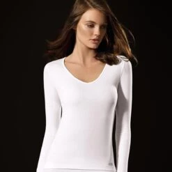 T-shirt Thermique Manches Longues Col V Thermo Blanc