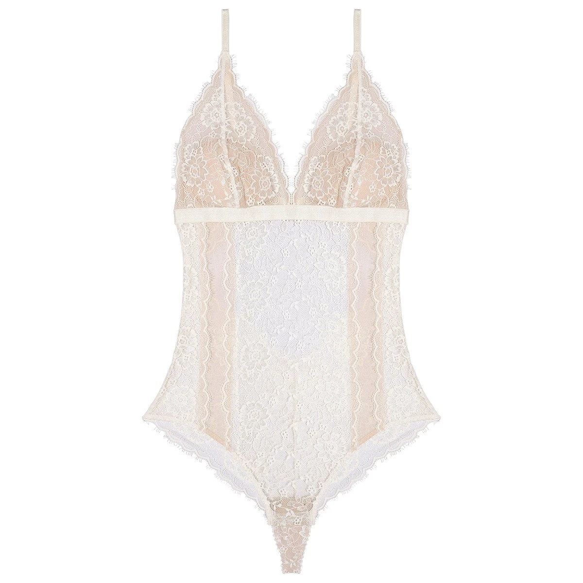 Underprotection Body String Décoletté Plongeant Et Dentelle Recyclée Amy Blanc